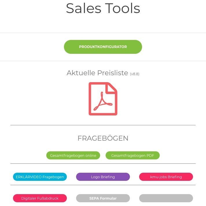 Preislisten, Fragebögen und Produktdatenblätter